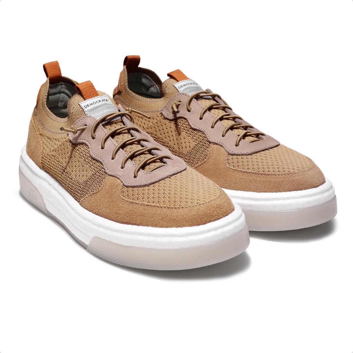 Tênis Democrata Beat Pulse Knit Masculino Marrom / Branco