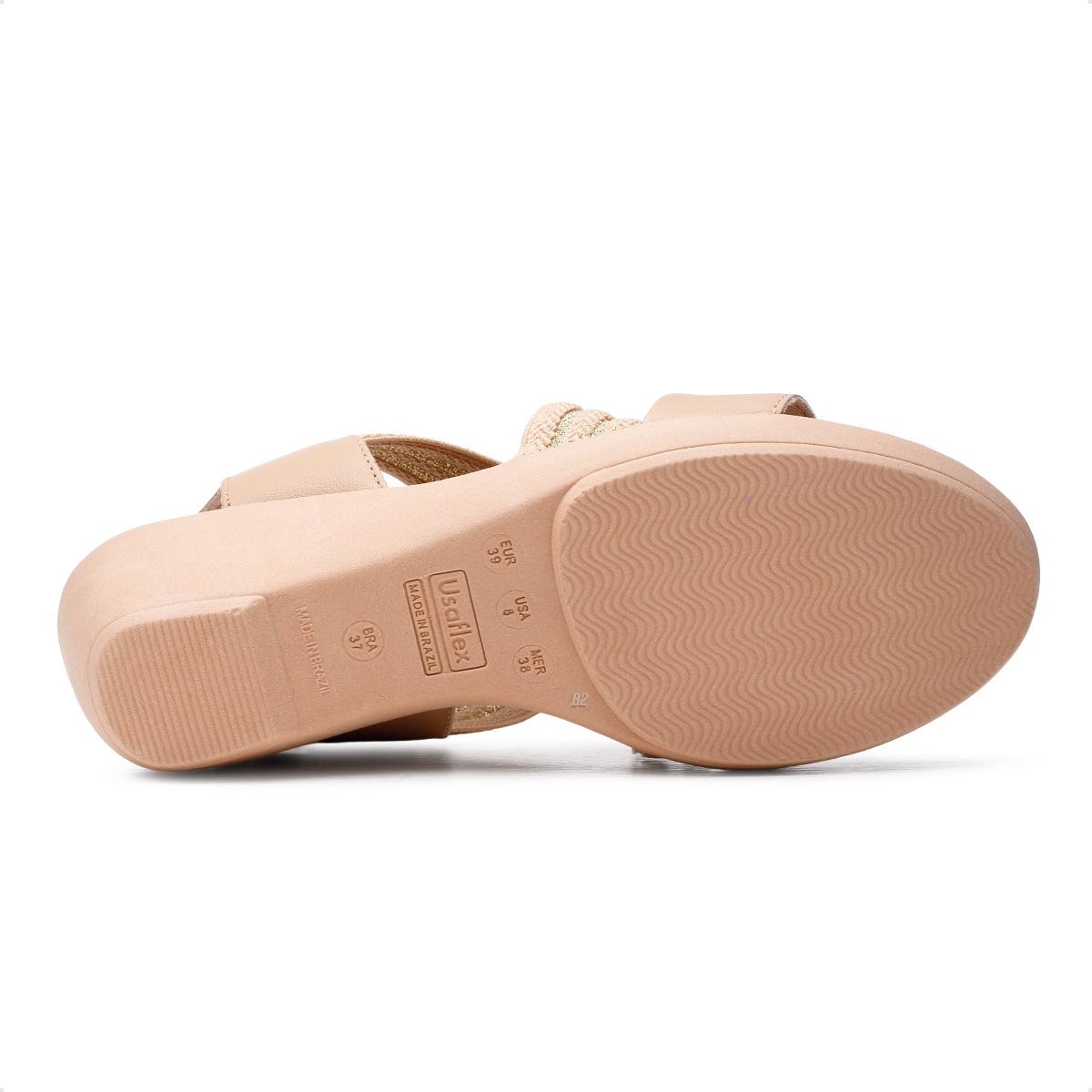 Sandália Usaflex Anabela Elástico Tiras Entrelaçadas Feminina Bege