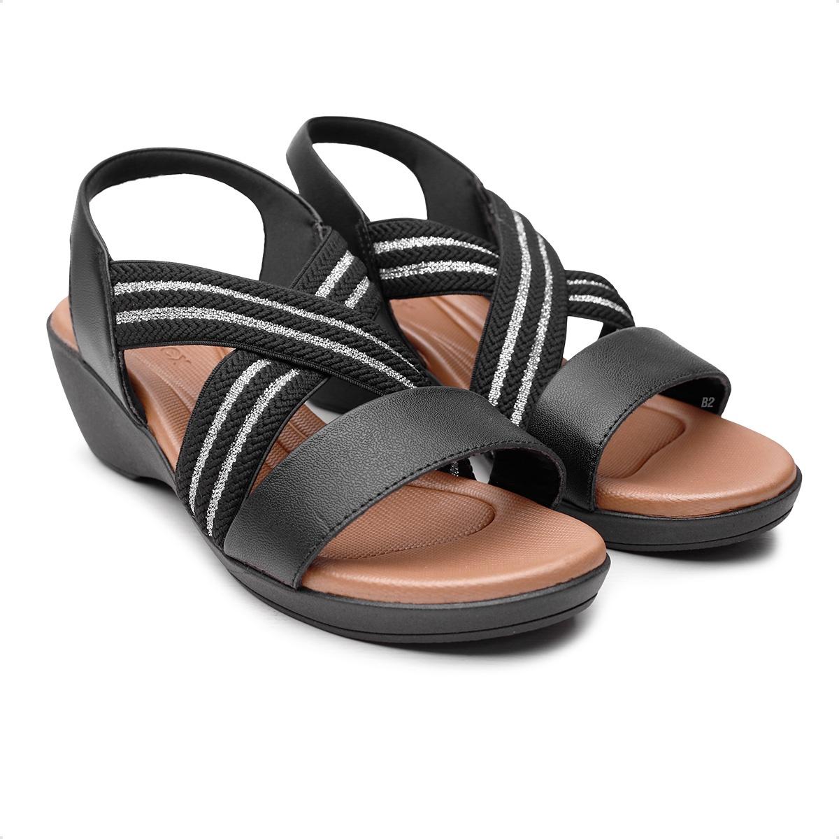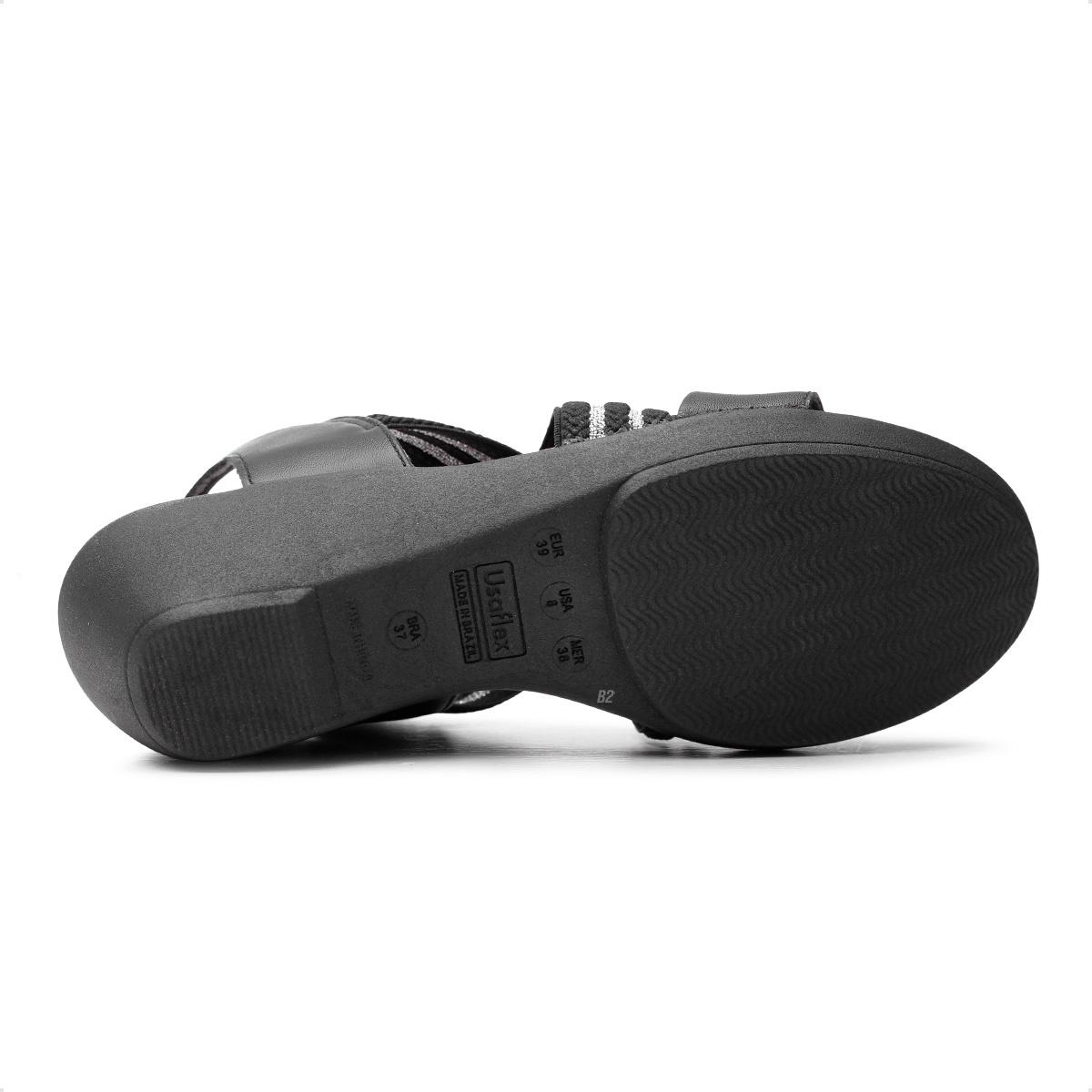 Sandália Usaflex Anabela Elástico Tiras Entrelaçadas Feminina Preto / Marrom