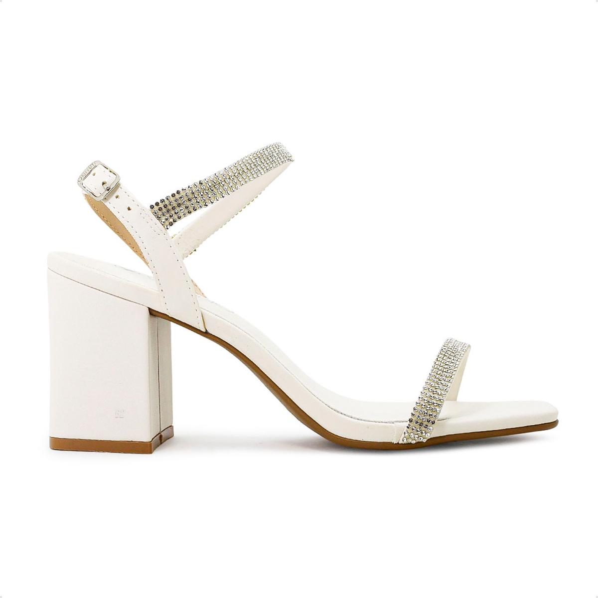 Sandália Via Uno Tiras Fivela Feminina Off White / Bege